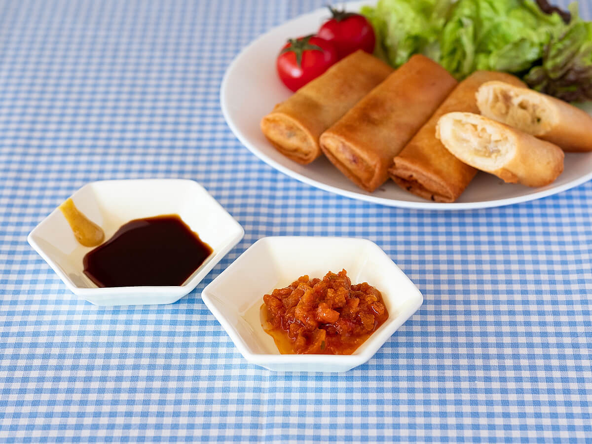 味変えやアレンジを加えるとしたら、おすすめはさまざまなディップソースを合わせた「春巻きディップ」。