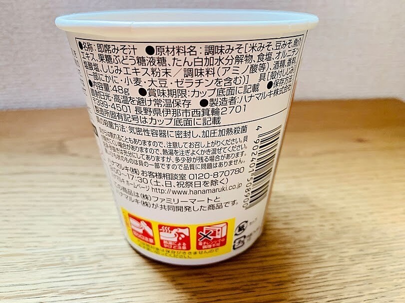 製造元はあの、「お味噌な~らハナマルキ♪」のCMでおなじみのハナマルキ株式会社です。大手みそメーカーなのでみその味はお墨付きです。