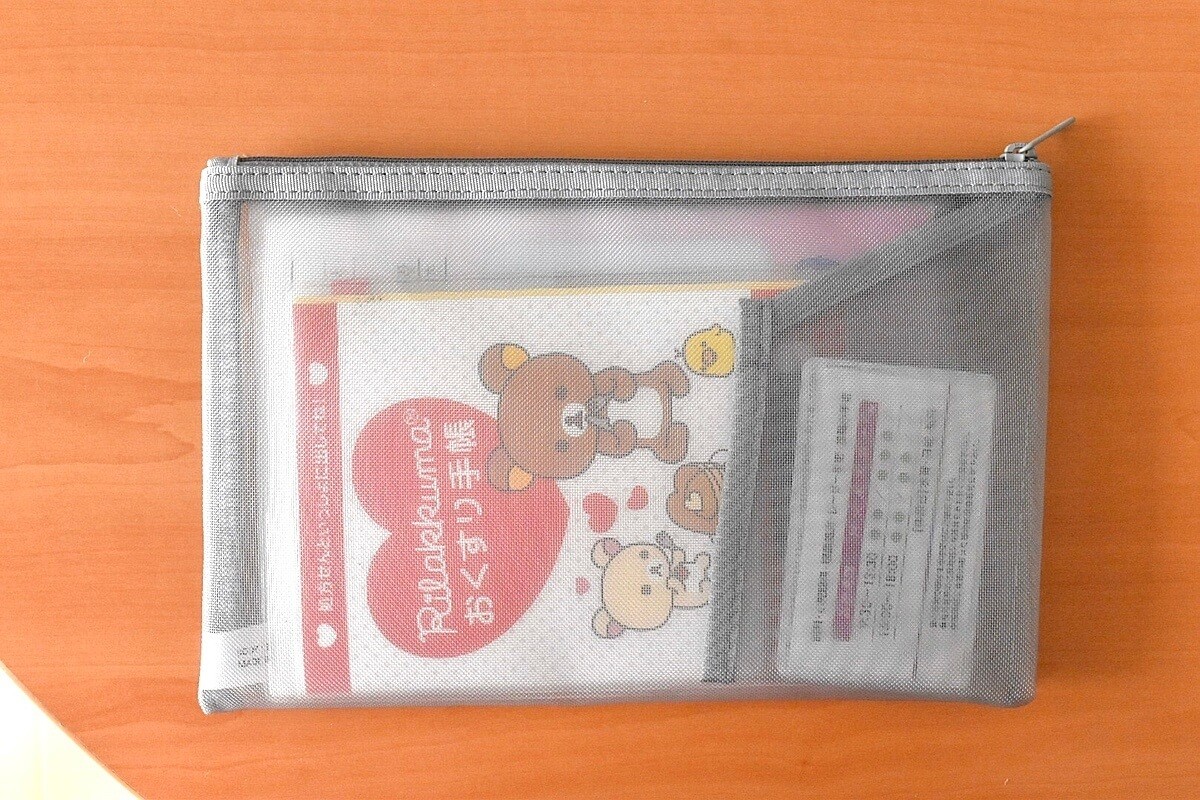 ナイロンメッシュケースポケット付きには診察券がスッポリ入るポケットが付いていて、ケースの中も散らかりにくいのがポイント。