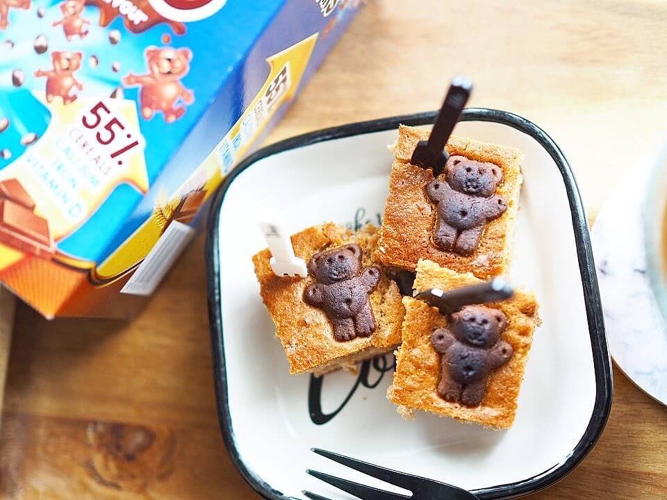 パウンドケーキやカップケーキなど焼き菓子を焼く際に、ベアーズビスケットをのせて焼いてもGood♡