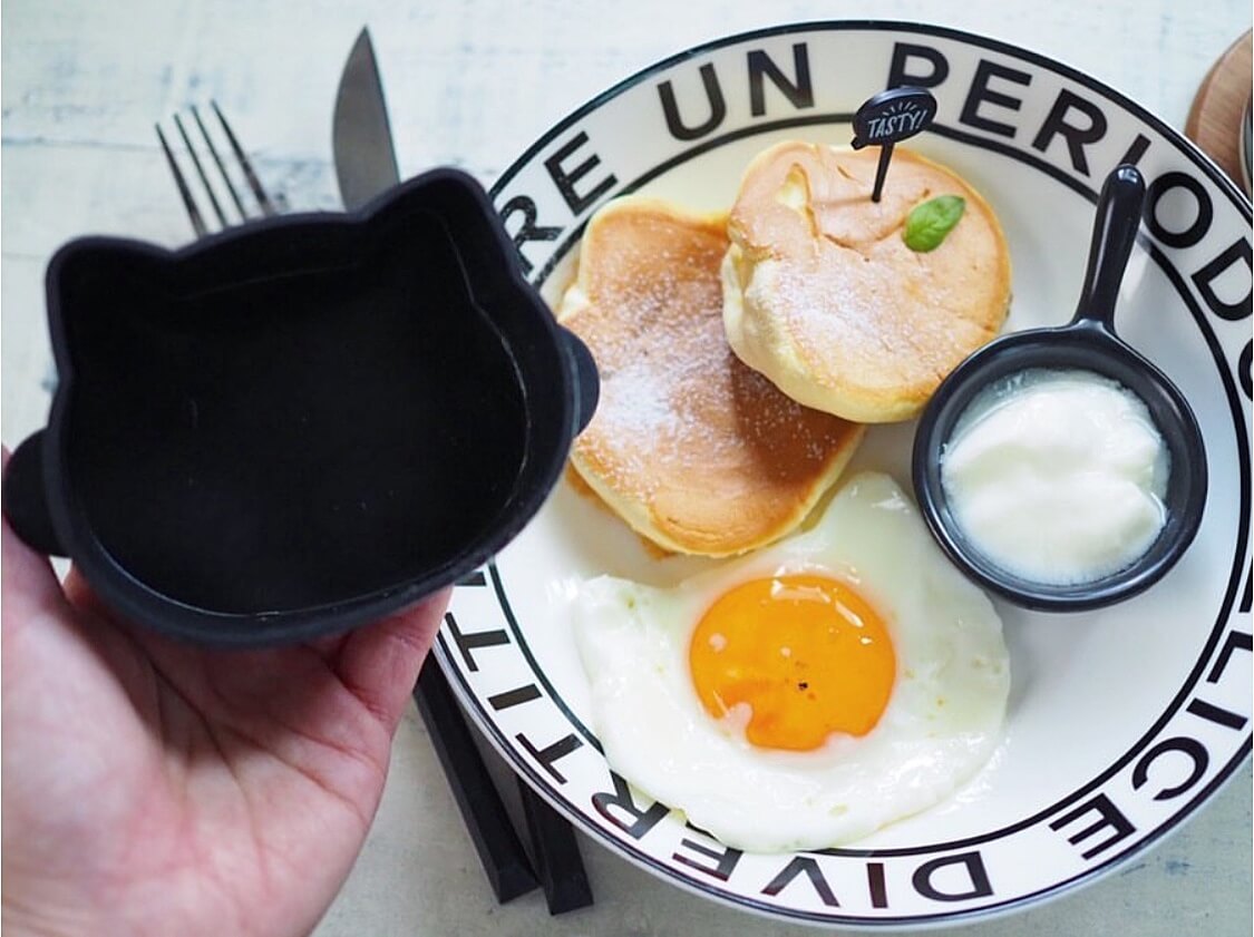 100均のシリコーンパンケーキ型は、他にも様々な料理で使えそう! ハート型はダイソー、星・ねこ型はセリアで見つけました。