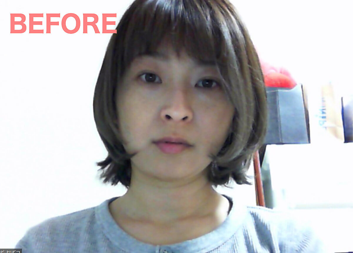 また、オンライン飲み会だと、顔の大きさがわかりづらく、肌色の面積が多いとそれだけで顔が大きく見えます。 解決策として、前髪をつくったり髪をおろしたりするのがおすすめ。肌色の面積が減り引き締まった印象に変化しますよ。