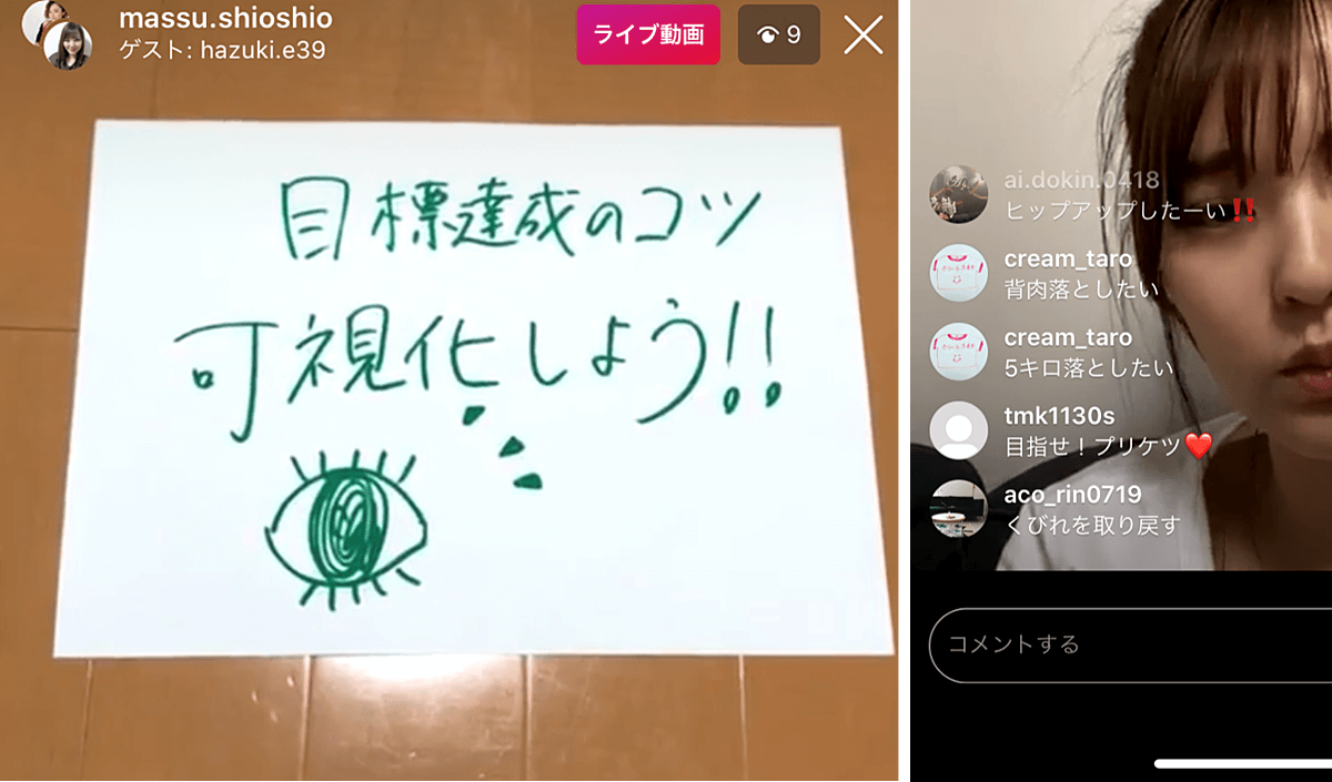 ※インスタライブ中、まっすぅさんの問いかけに、自分の「こうなりたい」という目標コメントが続々と...。