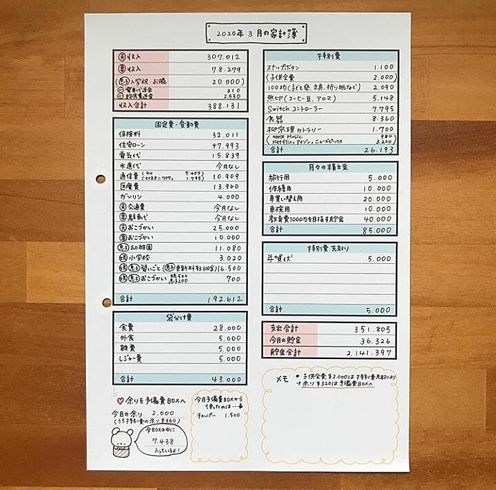 【書き方コツ:Case2】「アレンジ家計簿」を手書き!3年半で200万貯めた転勤族の妻