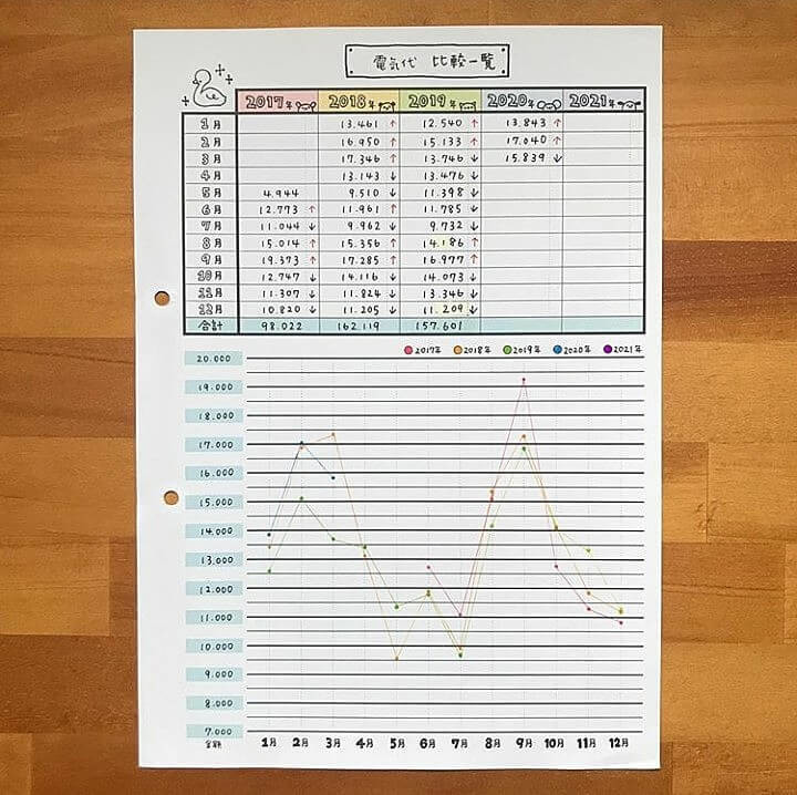 年ごとに比較しながら、コストのおさえ時をしっかり把握することで、水道光熱費をムリなく、年1万円ほど減らすことができました。