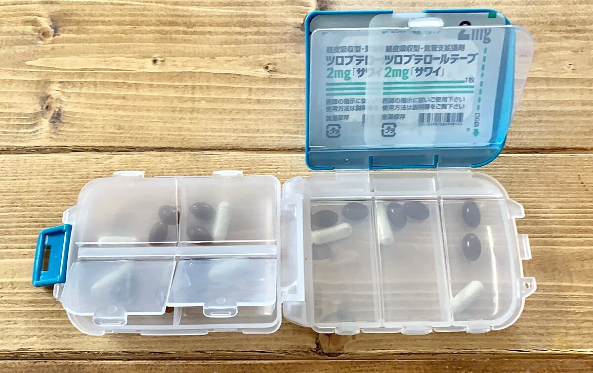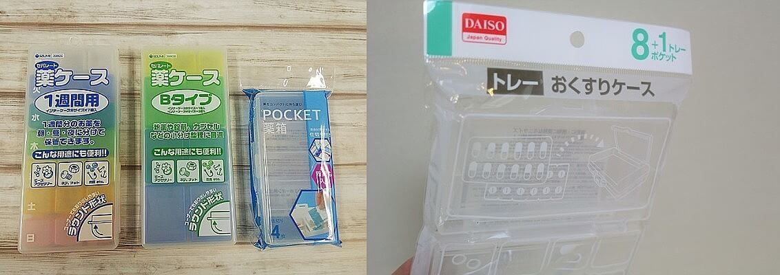 そんなに高価な商品じゃなくていいけれど、使い勝手が自分に合う商品を見つけるのが意外と大変なのが「お薬収納ケース(ピルケース)」。100円ショップにはいろんなタイプがありますね。