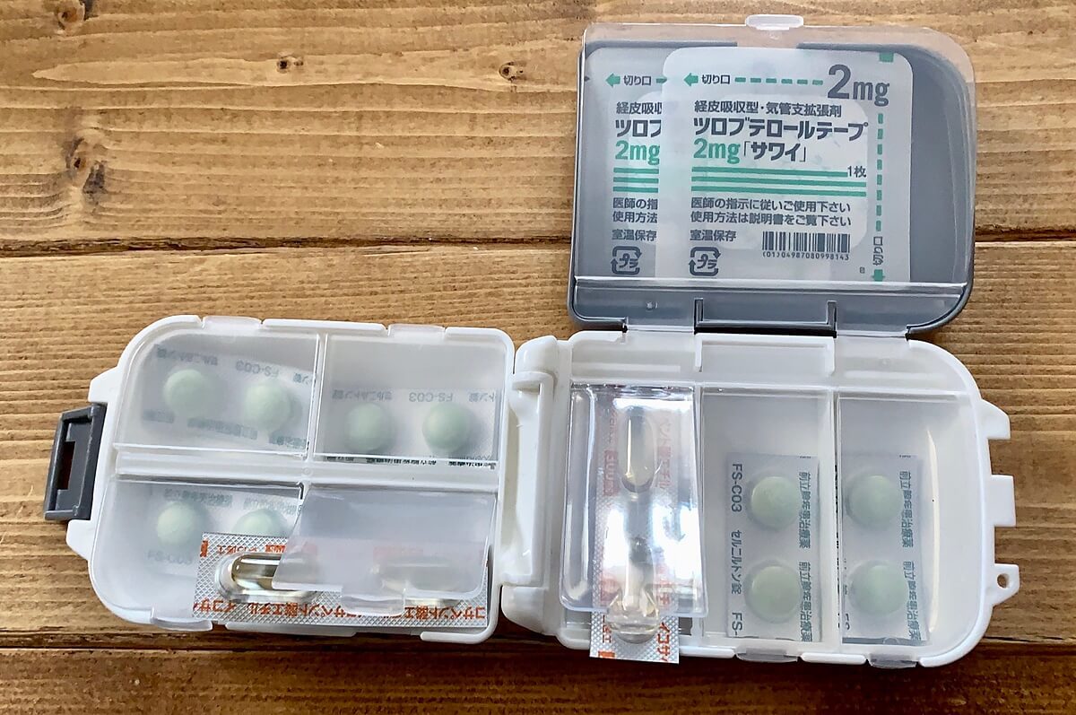 普段飲んでいるサプリと、咳止め用シートを入れてみました。