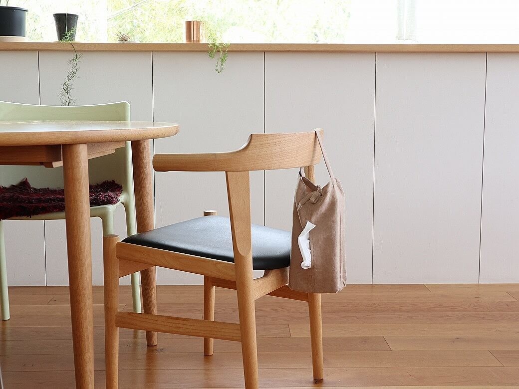 テーブルの脚や背もたれに吊るしておけば、すぐ手が届くだけでなく、ダイニングテーブルの上のスペースを使うことなくスッキリさせることができます。