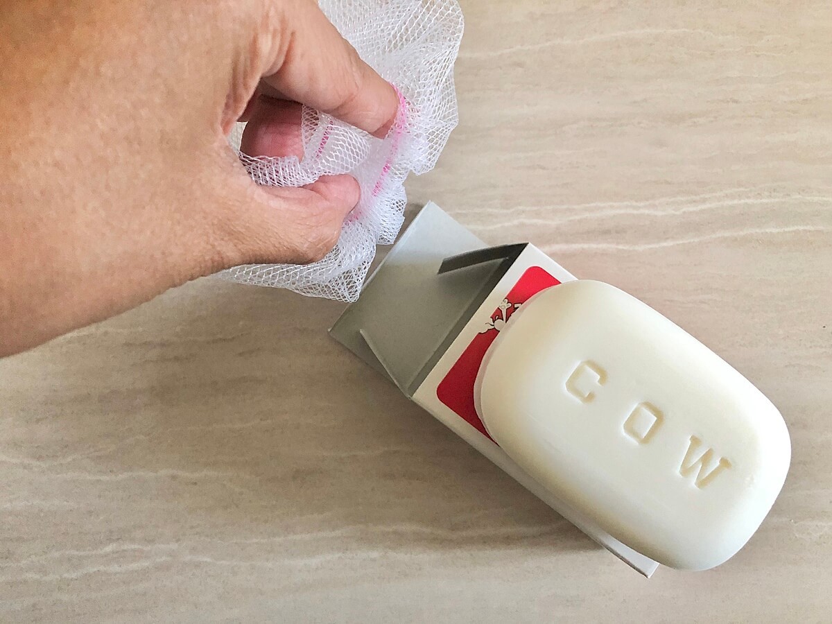 固形石鹸に欠かせない「泡立てネット」の中に、石鹸自体を入れたまま、吊るして保管できるという便利グッズ。