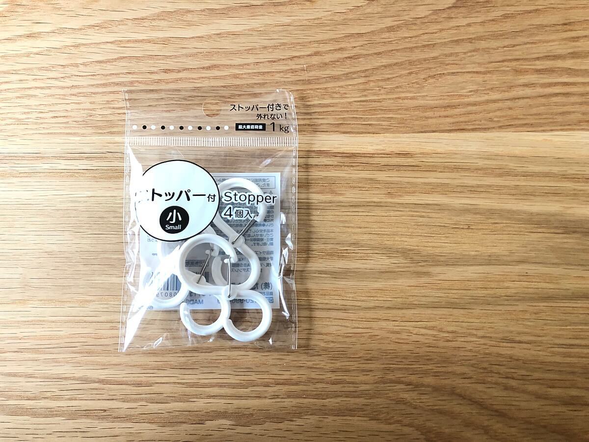 そこで今回は、セリアの「ストッパー付きS字フック・小」を2個、使用しました。