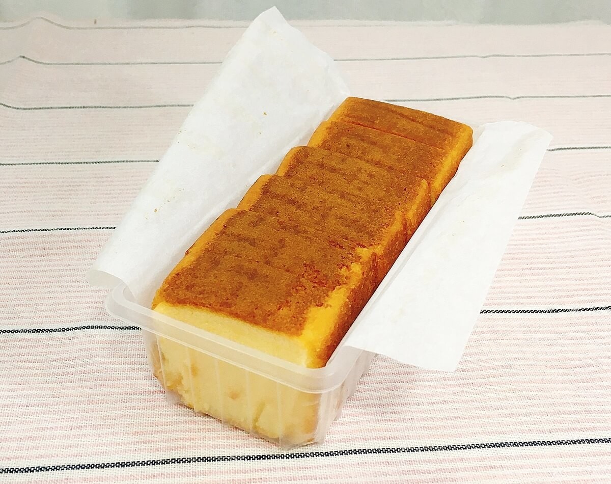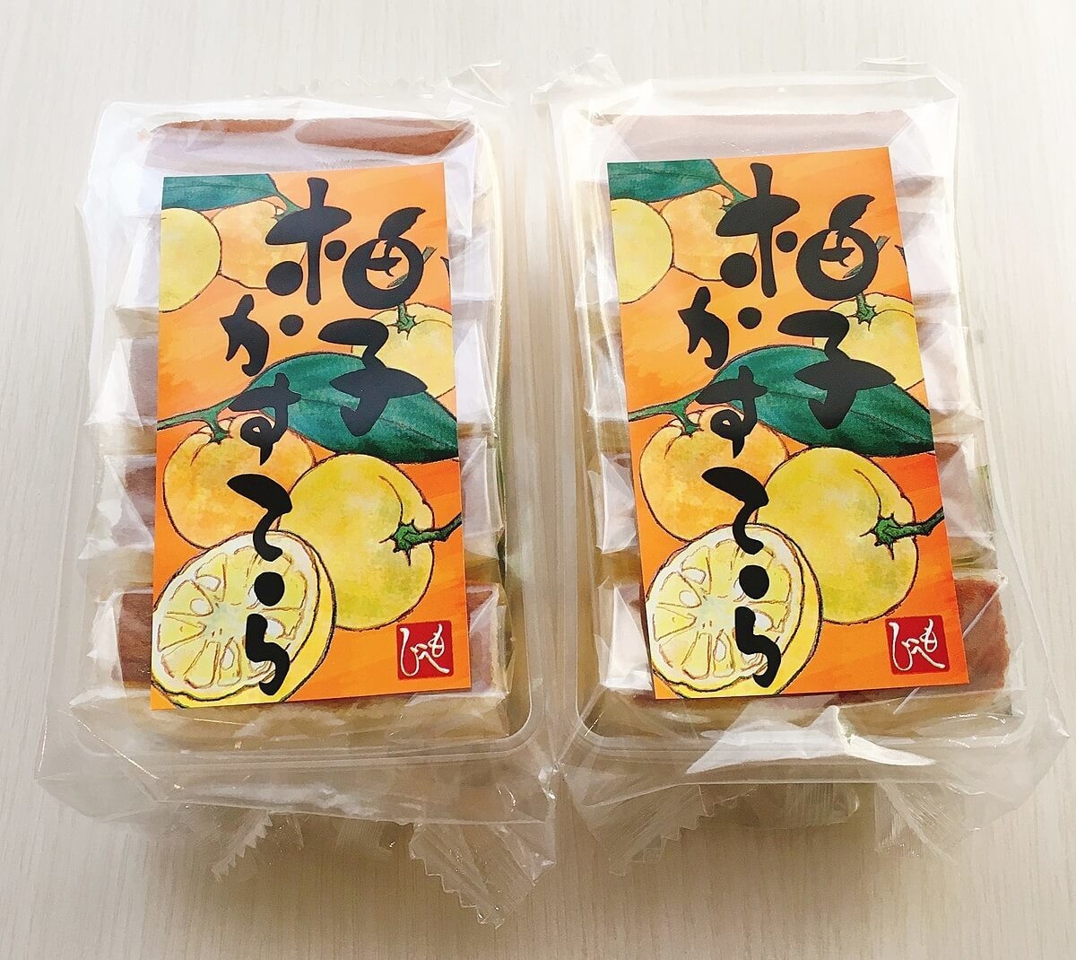 最初に紹介するの『柚子かすてら』。 なぜ、同じ商品がふたつ並んでいるかというと……、