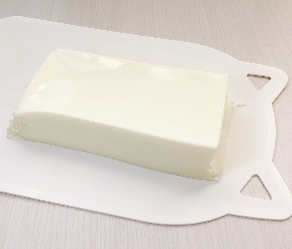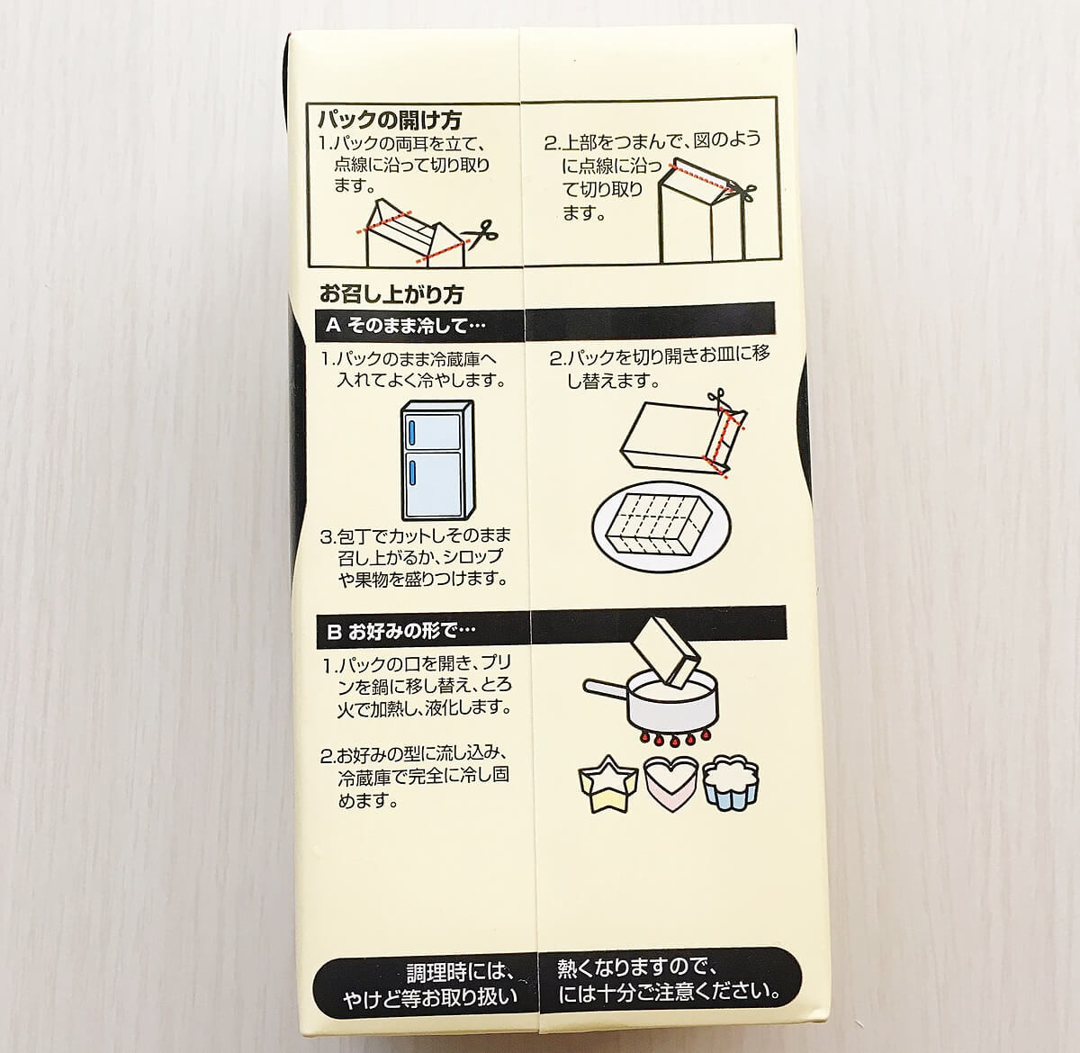まるでお豆腐です。 パッケージの裏に楽しそうな食べ方が載っていたので、半分はそのまま食べて残りの半分で試してみました。