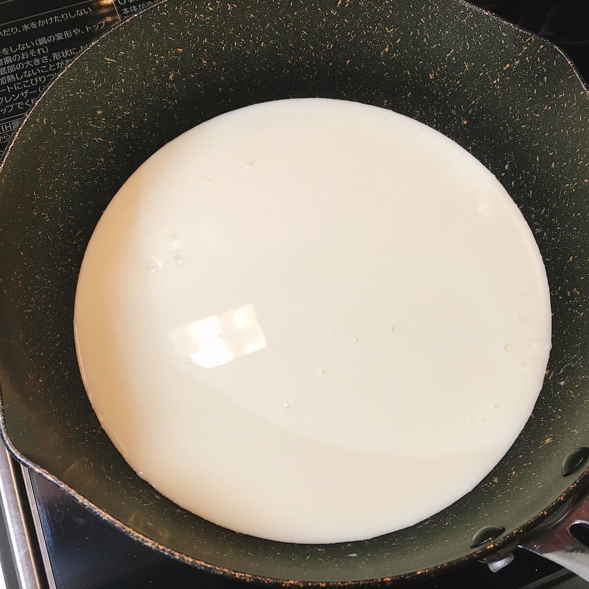 1.プリンを鍋に移し替え、とろ火で加熱し液化します。