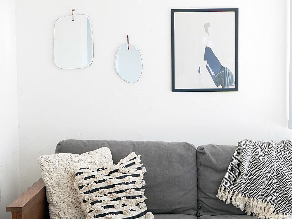 形を変えながらゆったりと流れる雲を切り取ったかのようなダルトンの「壁掛けミラー」。鏡に写り込む日常が、まるでインテリアの一つのように感じることができます。
