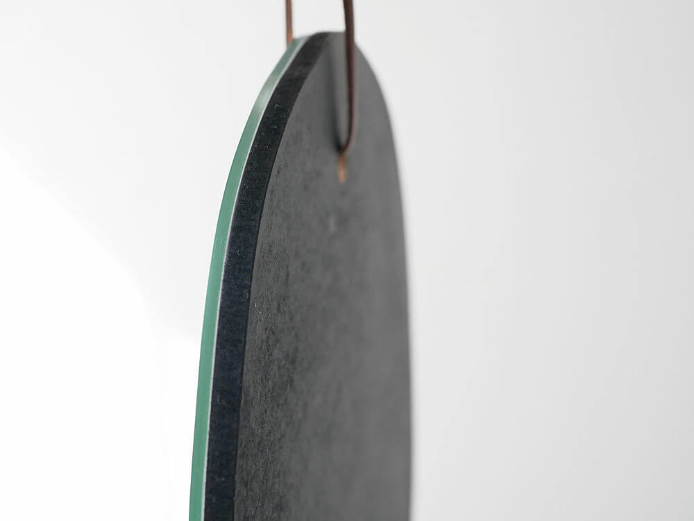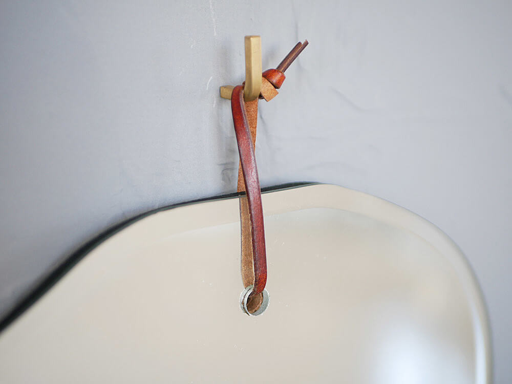 革紐が付いているため壁にひっかけて使うことができます。さりげない革紐がシンプルなデザインをさらに引き立たせてくれます。