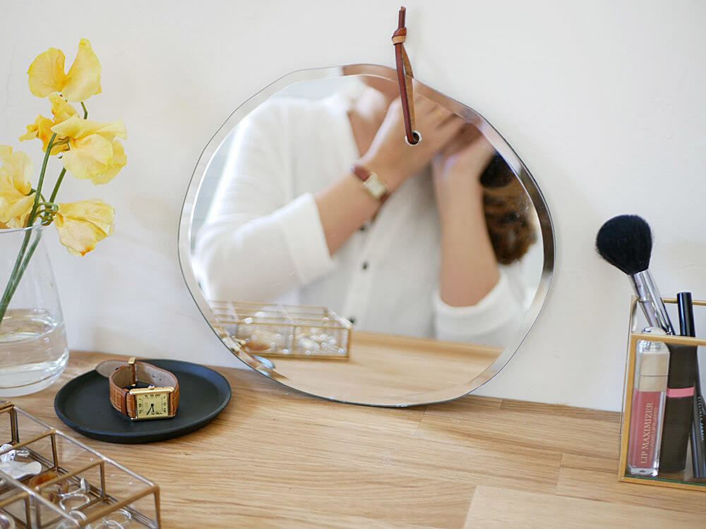 洗面所やトイレなど、水回りに置いてもちょっとしたお顔のチェックができます。お出かけ前や食後などに簡単にメイクを直したい時や、ゲストをお招きした際にも喜ばれますよ。