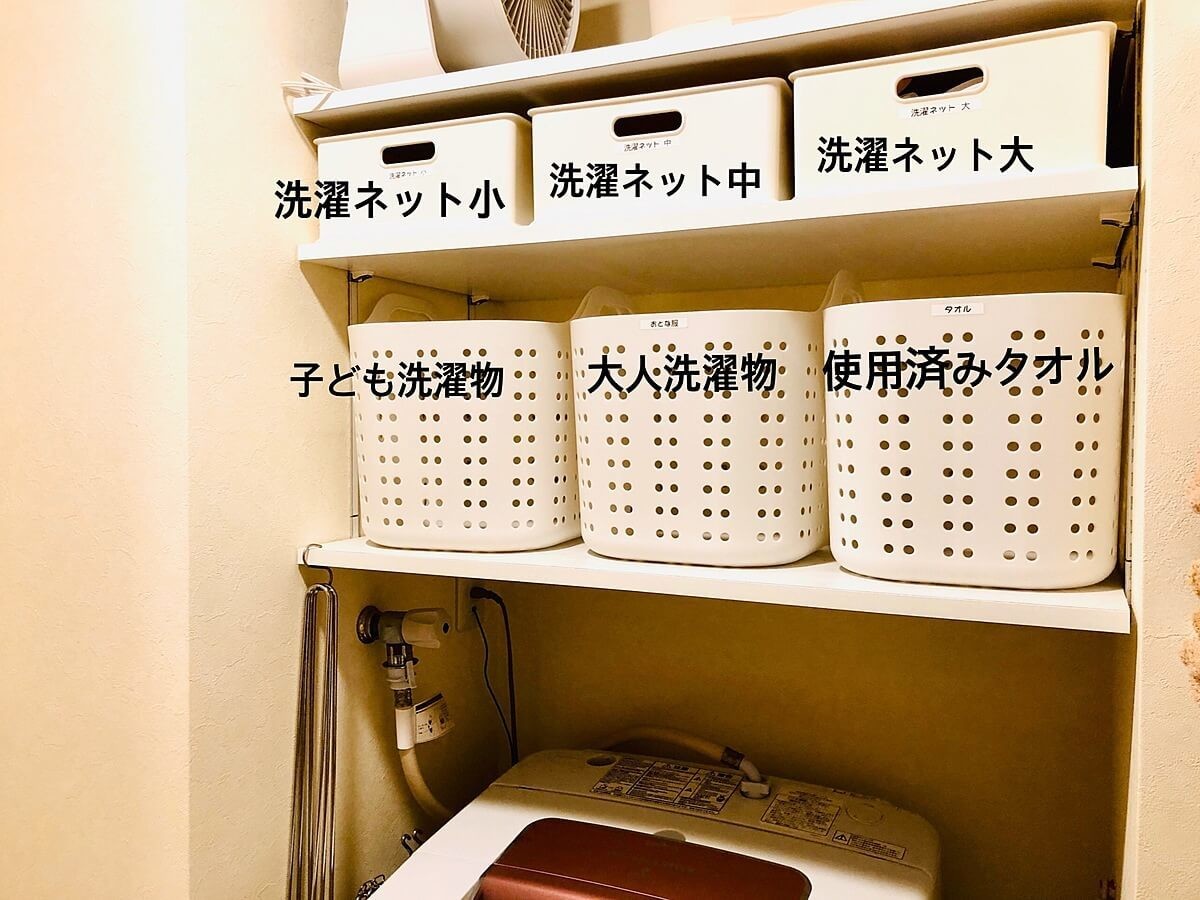 子ども服用、大人服用、タオル類で分けて洗濯物を放り込んでいます。