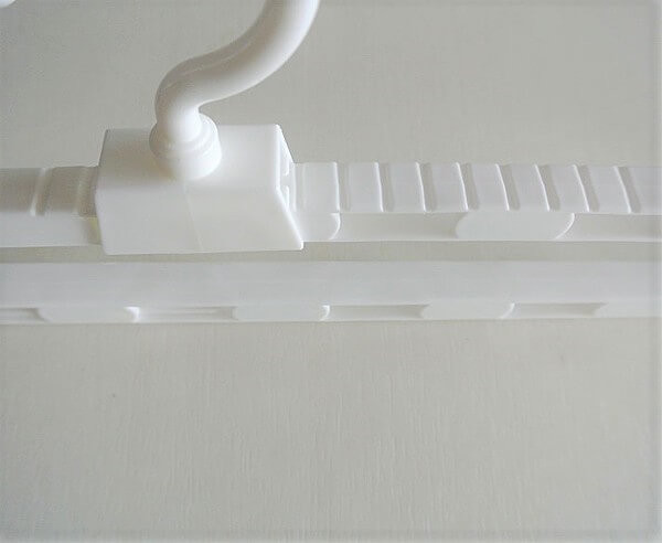 フックの部分もスライドしたアームに合わせて移動できるので、ハンガーが片寄ることはありません。