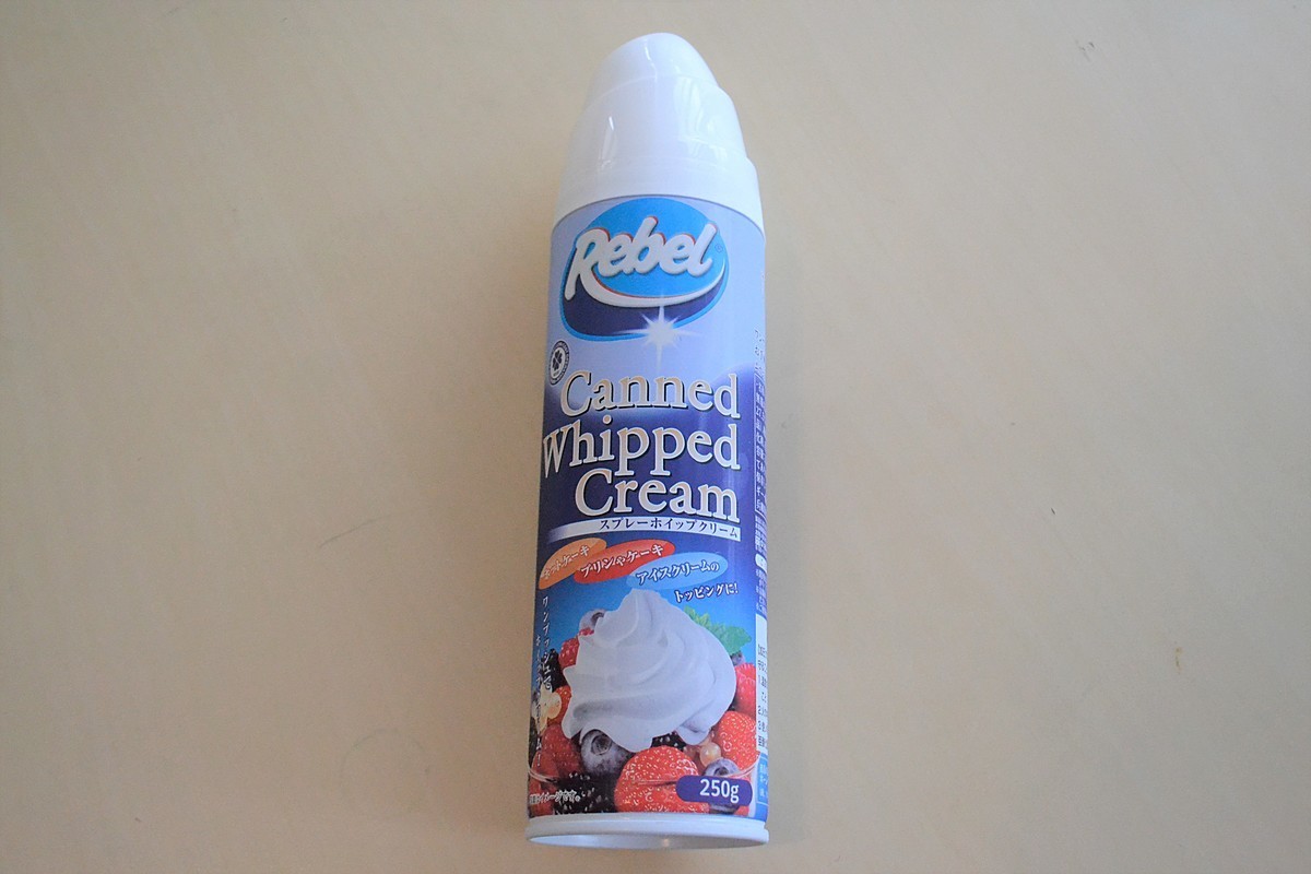 逆さにしてノズルを押すとホイップクリームが出てきます。これも業務スーパーで購入する事ができます!
