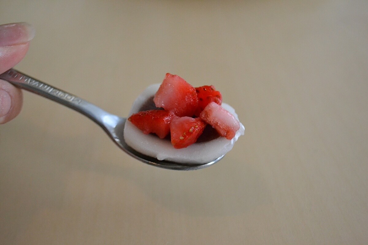 このように、大福に挟まなくてもスプーンで食べても食べやすいです。