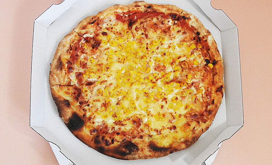 コーンがたくさんのピザもついています。