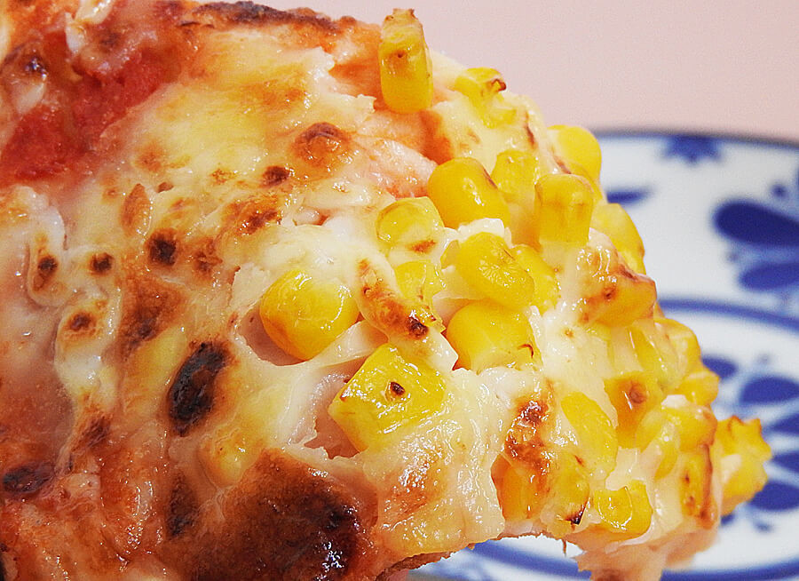 ところせましとコーンがトッピングされているピザ。コーンがとっても甘くて子ども達に大好評でした。特に、2歳の娘はコーンが気に入ったようで、コーンだけを取って食べていました……。(笑)
