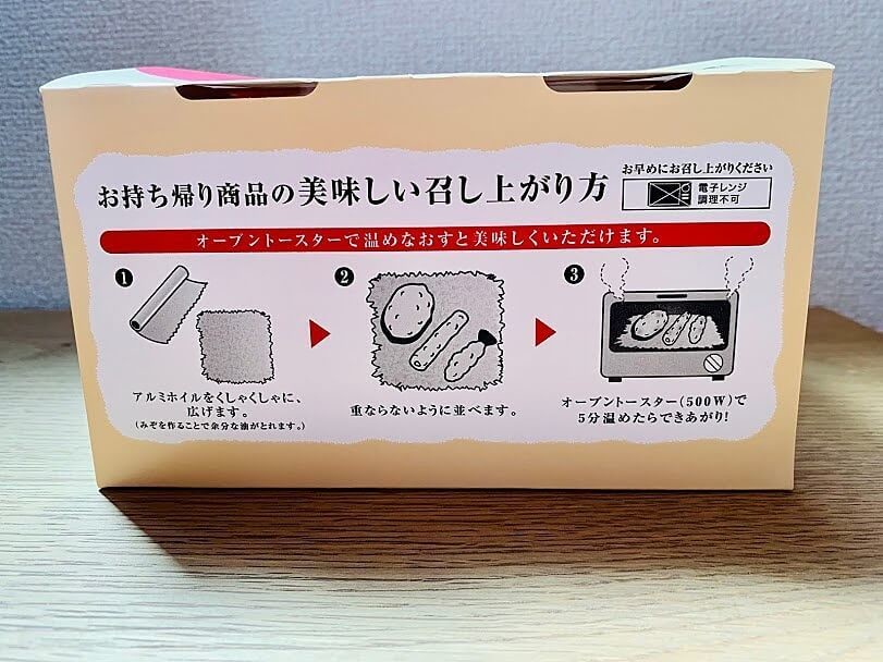 持ち帰って箱を開けると蒸気で若干しなっとなっていたので、おそらくお店の揚げたてカリカリはもう少し高さがあるのではないでしょうか。
