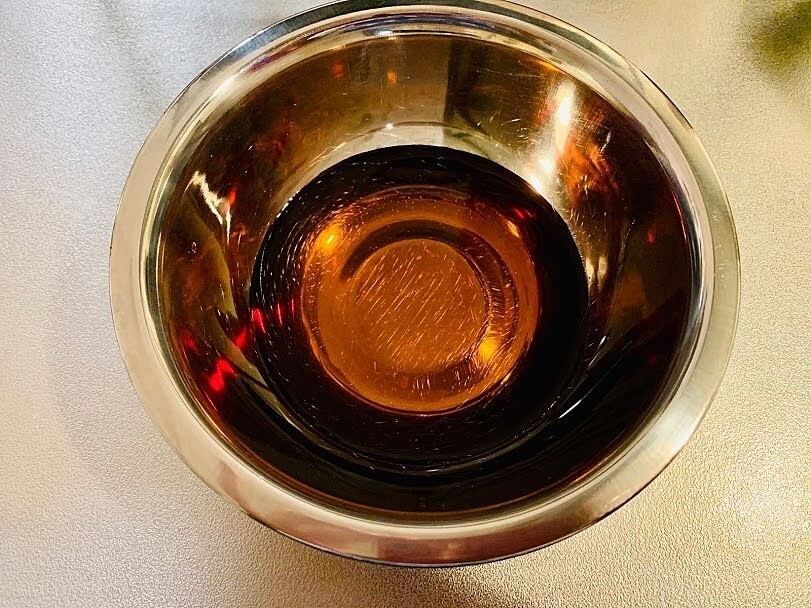 白だし、みりん、酒、塩、しょうゆ、水で天つゆを作りました。