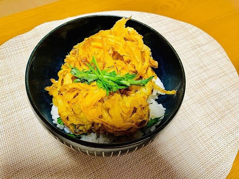 焼き戻してダイレクトにオンザライス!ボリュームかき揚げ丼