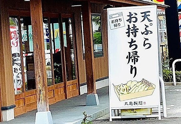 画像を見ていただいたらもうお気づきかと思いますが、うどん・ごはんのトッピングやおかずとして大人気の、揚げたて天ぷらが持ち帰りできるんです!こんなに大きくお店が推しているなんて!これは、初めて利用する人にとっても心強いですね。