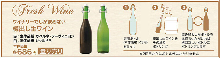 グレープフルーツのような柑橘系の香りとナッツのような香ばしい風味のシャルドネの生ワインだそう。