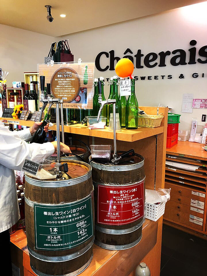 シャトレーゼといえば、「樽出し生ワイン」がめちゃめちゃおいしく、瓶をもっていくと格安でつげるので、ついついワイン量が増えてしまう…という危険な魅力のあるお店(笑)。生ワインを見つけたときは、そのおいしさに衝撃をうけました!