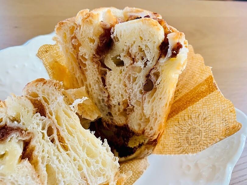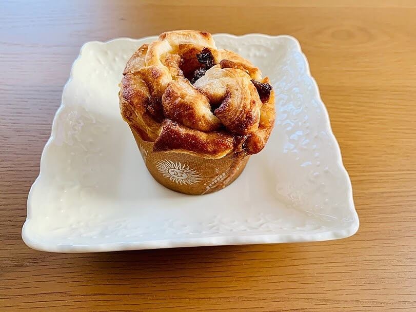 シナモンフィリングも目で確認できるくらいしっかりと入っています。レーズンとクルミの食感が良いアクセントに。シナモンとレーズンって合いますよね。本格的な味わいです。