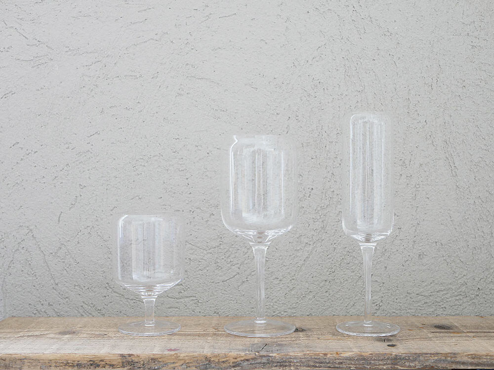 左から「アクア」「ワイン」「フルート」どれもテーブルの上で良いアクセントになりそうです。