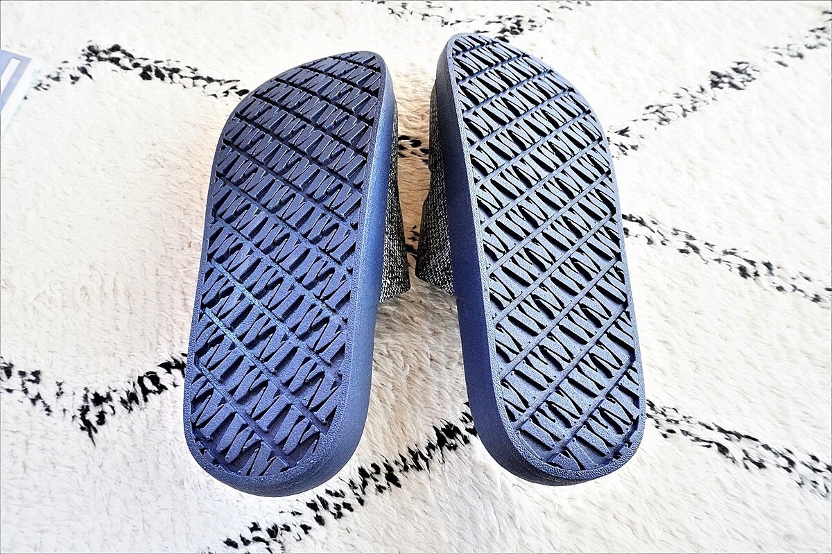 ワークマンのwmbPVCタウンサンダルは足の形にフィットする立体形状のソール。しかも滑りにくいポリ塩化ビニル製でザラザラした加工がされているので、驚くほど滑らず快適です!
