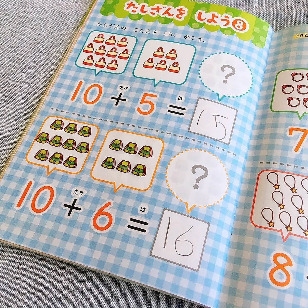 例えば、「かず」のドリルは、始めは簡単なたし算から、序盤ではさらに大きな数字、そして最後の方になると、2ケタから3ケタの計算が出てきます。