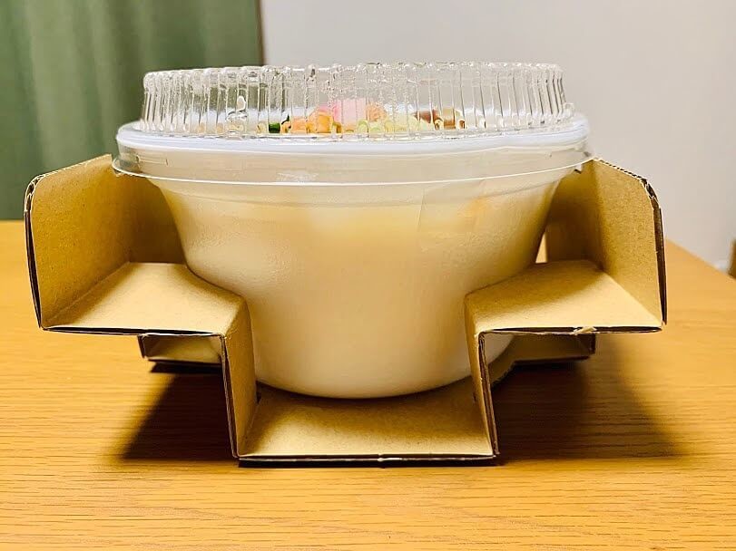 容器は発泡スチロール。フタはプラスチック製です。この容器は電子レンジ不可です。