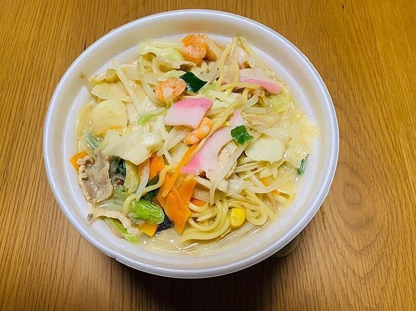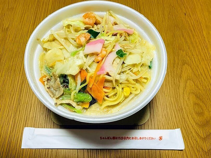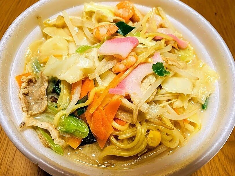 ホームページには、皿うどんはあんかけとパリパリ麺は別容器で提供されるとありますが、ちゃんぽんに関しては記載もなく、写真を見ても予めスープに入った状態で提供されています。