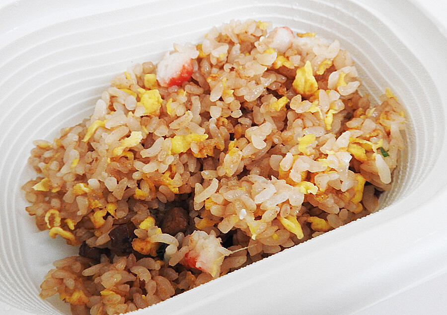 「キッズチャーハンセット」に入っていたチャーハンはかにかまの味が強めに出ていて、子ども達に好かれそうな味でした。中華系の味というよりは、焼き飯に近い感じ。