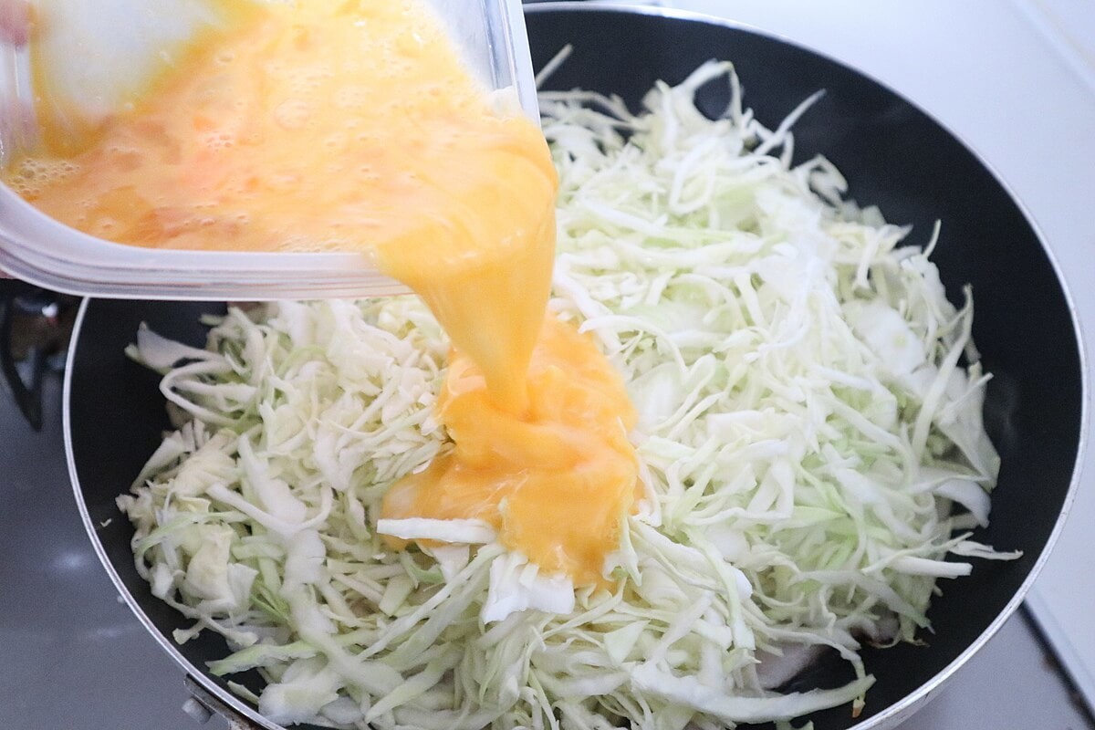 キャベツが蒸されて甘く柔らかくなり、ソースやマヨネーズともよく絡み美味しく食べれます。