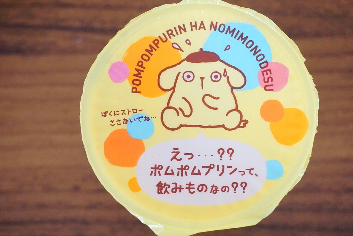 付属の太めのストローをさして飲むのですが、さらにポムポムプリンは、「ぼくにストローささないでね…」と。 なので、今回はフタを開けて飲むことにしました。