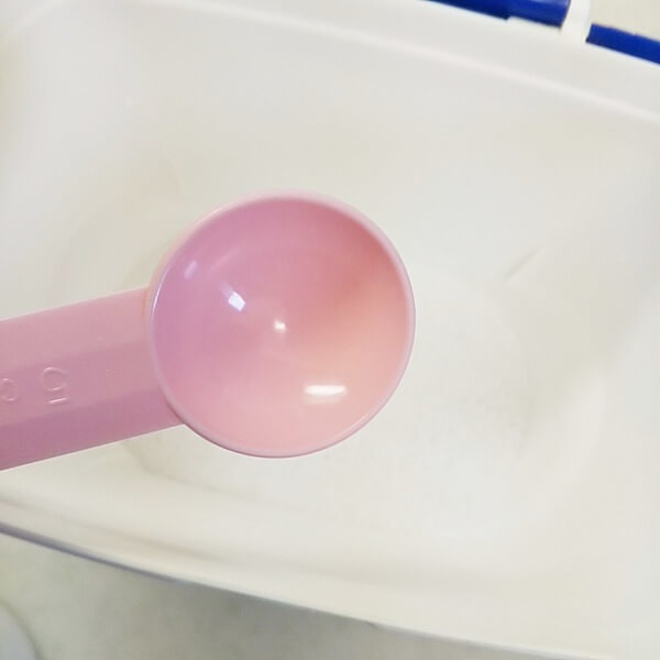 元々専用の入れ物が無いので、以前使っていた食洗機洗剤のケースに移していました。