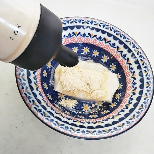 きなこと砂糖をタッパーに半々入れてスプーンで混ぜていたのですが、今はオイルボトルに入れてシャカシャカ振るだけです。