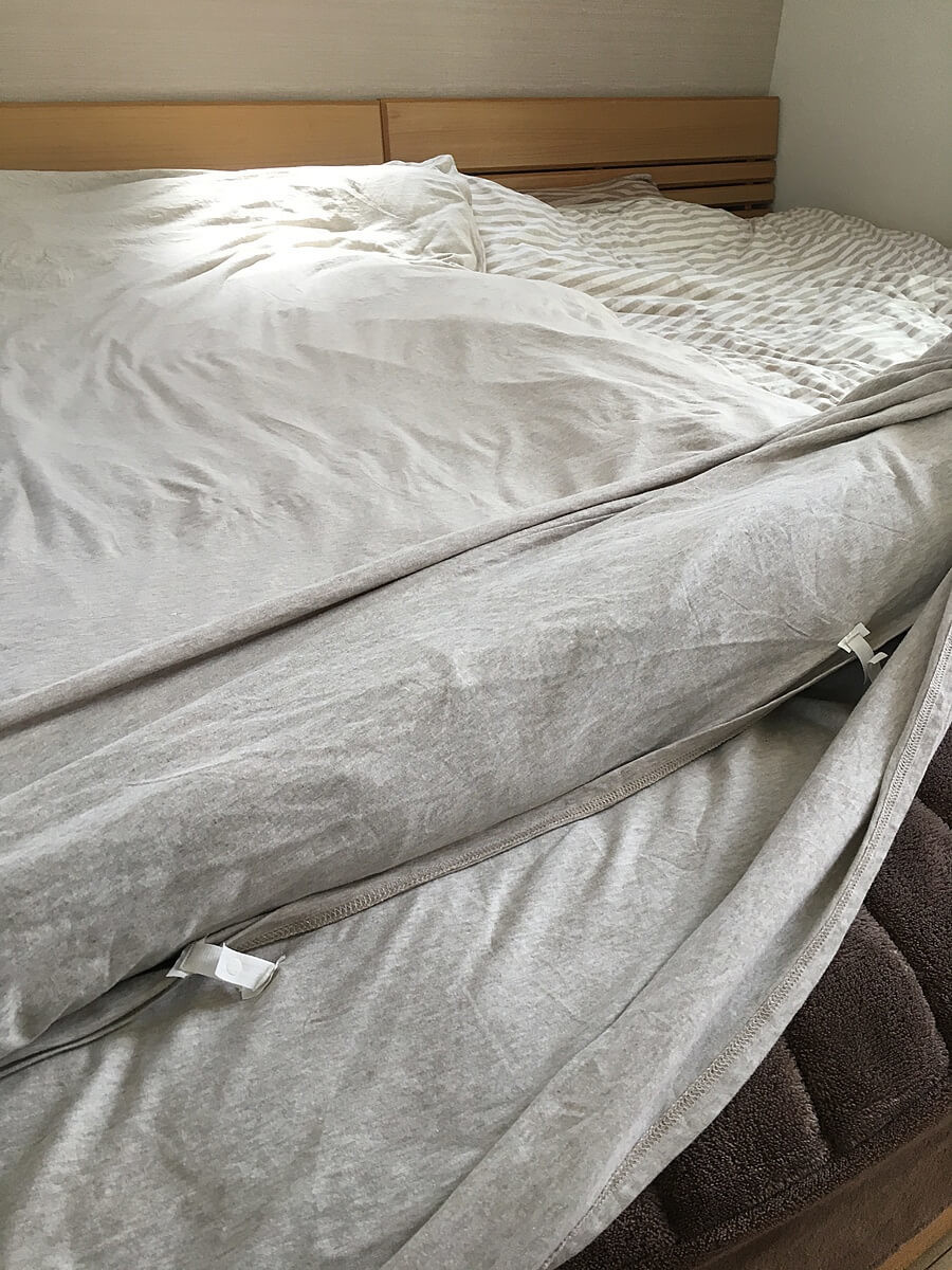 小さな変化ですが、布団カバー交換はほぼ毎日のことなので、このプチストレスから開放されるのは、とても大きなことでした!