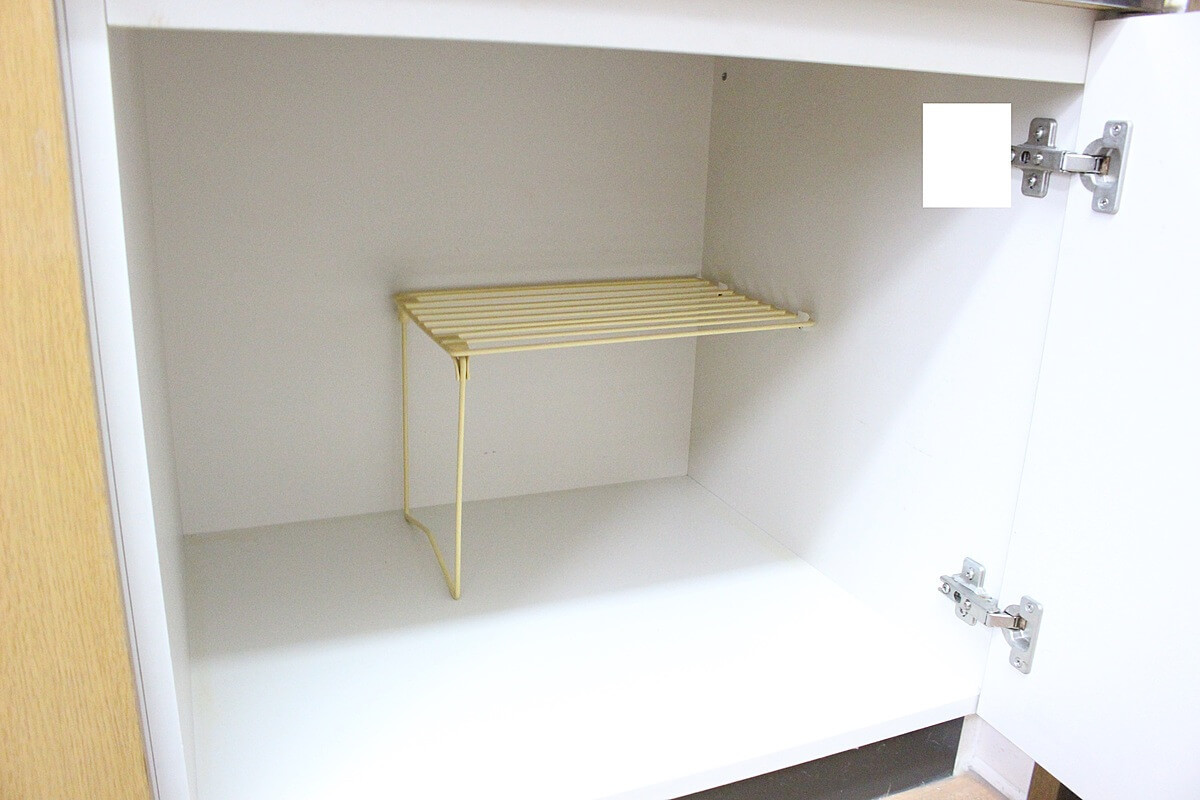 試しに、こちらのキッチンのコンロ下の空間(内寸幅57×高さ45×奥行49.5cm)にVARIERA 引き出しマットを使ってみたいと思います。