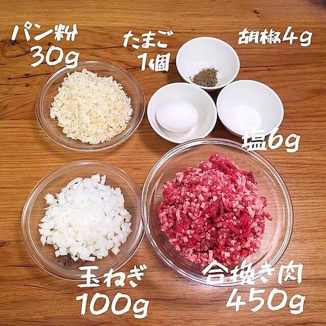 まず初めに、ハンブルグステーキの材料からパテ練り、成型までを紹介します。