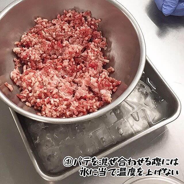 ①パテはよく冷やした上、合わせる際に2重氷にし、温度を上げないようにする。