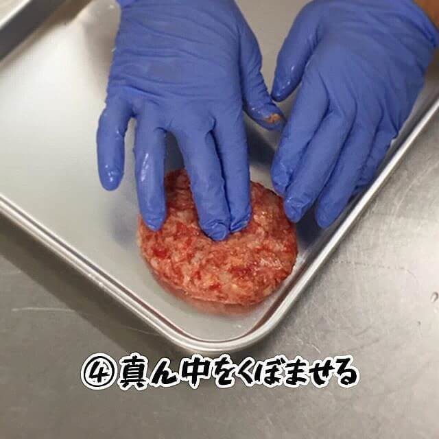 ④ 真ん中をくぼませる。(火の通りを均一にする為)