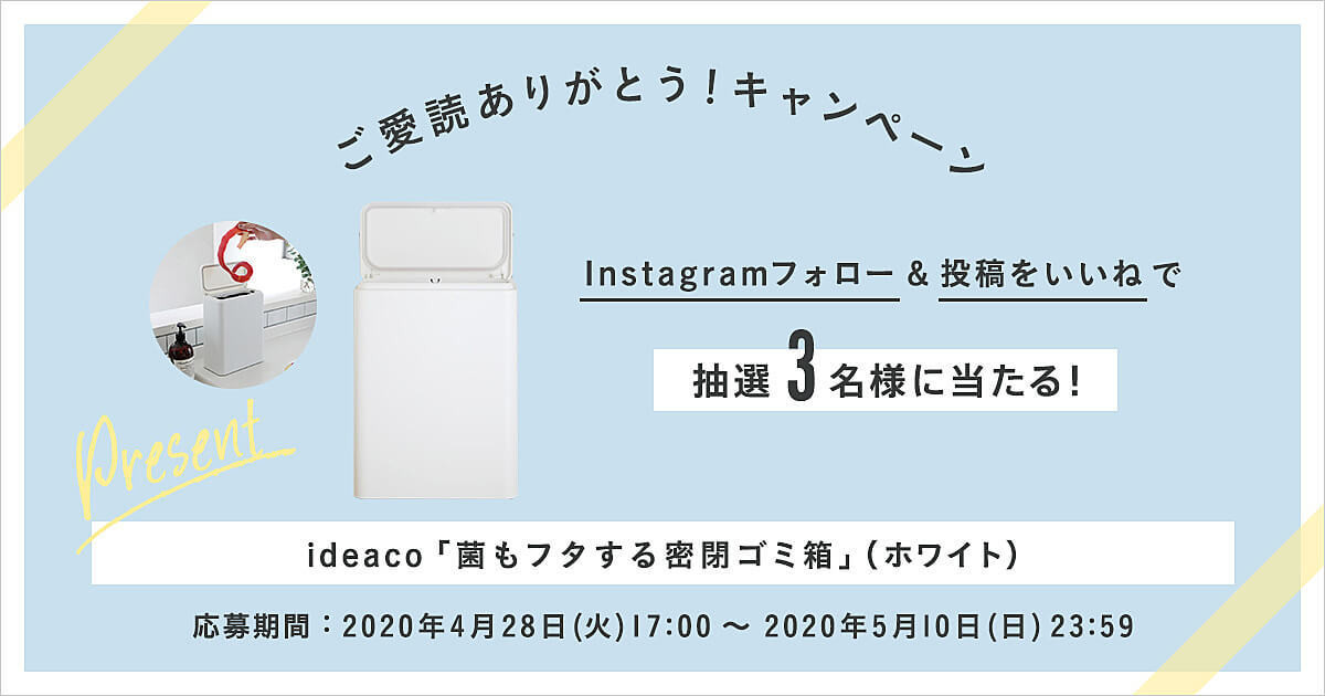 抽選で3名様に、こちらの記事でご紹介した「ideaco『菌もフタする密封容器型衛生ゴミ箱(ホワイト)』」をプレゼント。