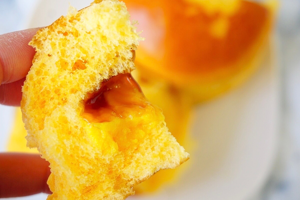 完全にパンの中にプリンが入っています。